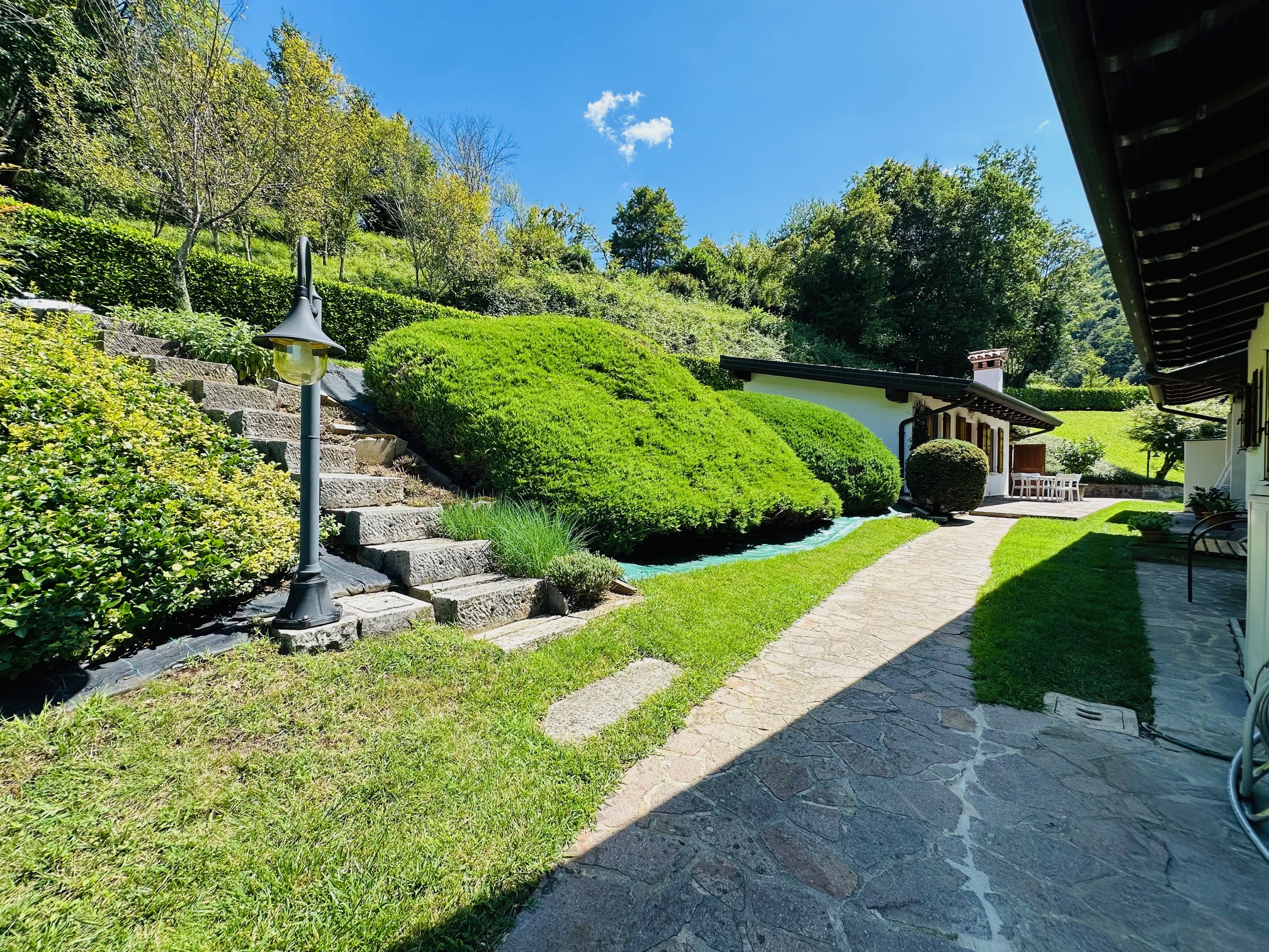 Disposta su due livelli oltre al piano scantinato, l’abitazione di compone di 4 camere da letto, due bagni oltre alla lavanderia. Cucina separata e spazioso soggiorno con sala da pranzo e caminetto. La caratteristica particolare è il meraviglioso giardino piantumato di circa 5.700 mq che circonda l’abitazione, mantenuto in maniera impeccabile.